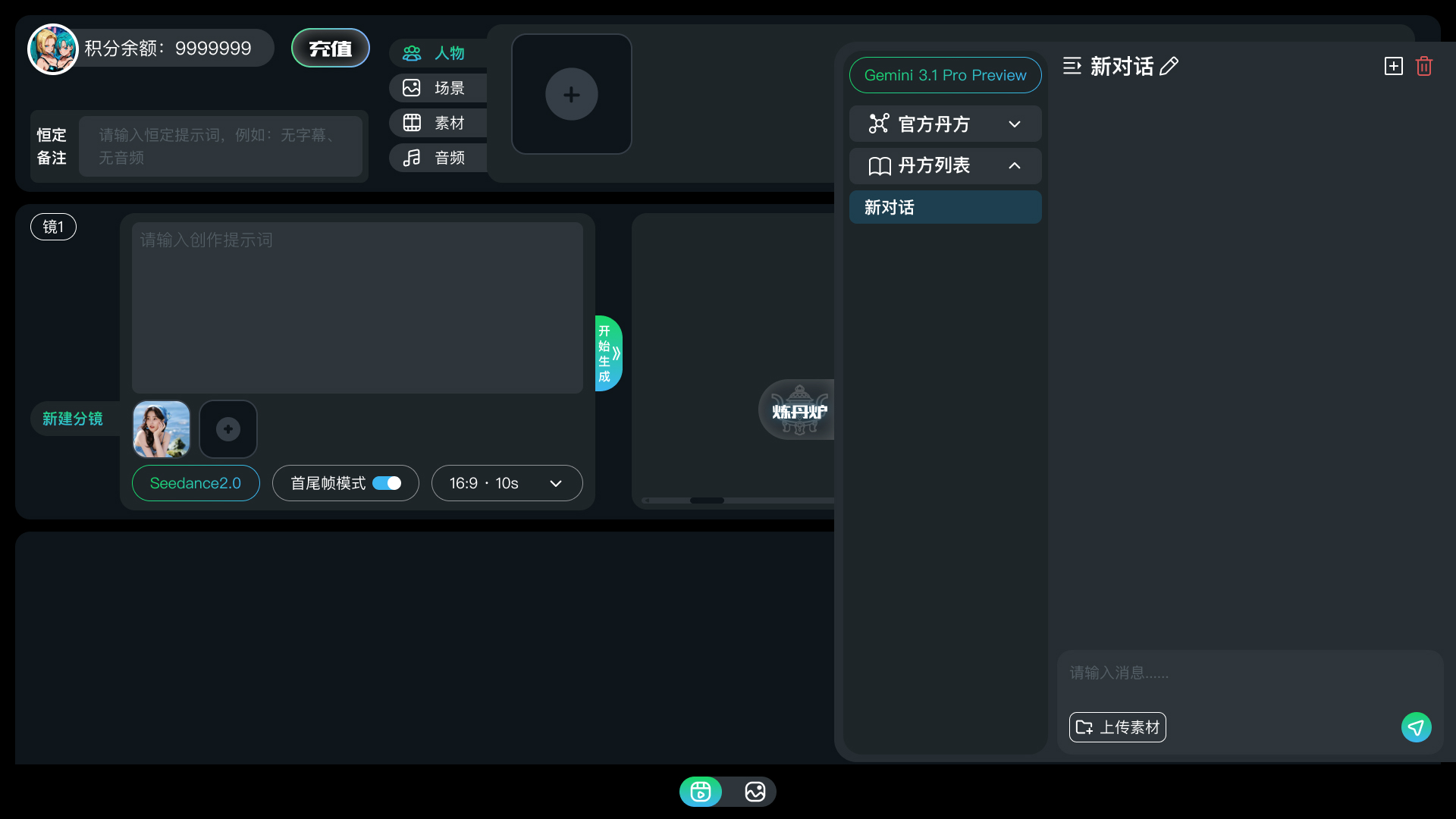 内置专业AI助手"炼丹炉",提供创作指导、剧本生成、提示词优化等全方位支持,让您的创作之路更加顺畅。